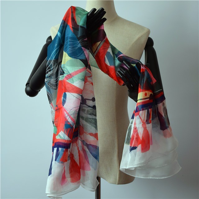 Scarf factory chiffon scarf with printed tassels